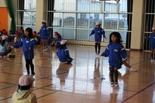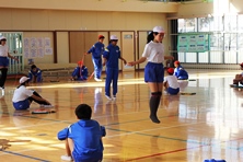 全体で目標タイムを設定した前跳び、個人で2重跳び、あや跳び、交差跳び、後ろ跳びの中から1種目選んで回数を数えます。