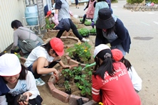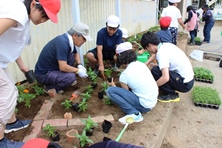 火曜日にボランティアの方と児童で花壇に花を植えました。