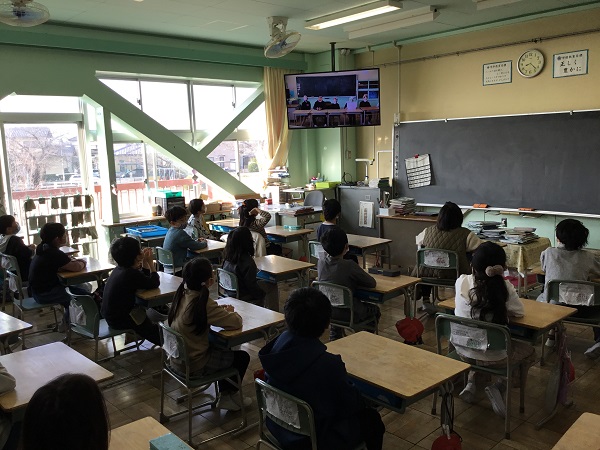 今日は、5年生と先生方からのお祝い動画を視聴しました。5年生は授業の様子などを楽しいお話にしていました。先生方は、学年ブロックごとにお祝いの言葉をまとめていました。