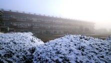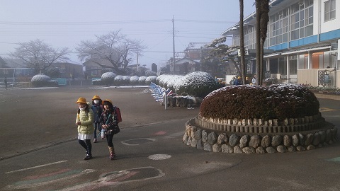 風花がまい岡部小学校も植木や木が白くなっていました。
