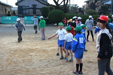 六年生が二年生と一緒に遊んでいました。卒業まであと1ヶ月を切ったので今後全学年とレクをするようです。