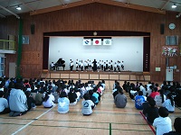 「ゆかいに歩けば」と「Wish~夢を信じて」の2曲を合唱しました。クラスみんなで気持ちを合わせ、素敵な歌声で歌っていました。