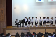 合唱は「怪獣のバラード」と「星空はいつも」です。本番の衣装に着替えてとてもすてきでした。一生懸命練習したことがよく伝わってきて心に響く歌声でとても感動しました。
