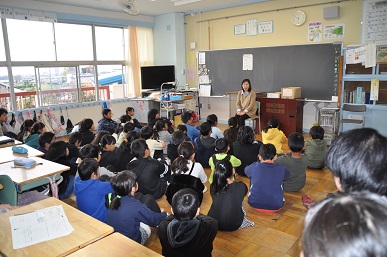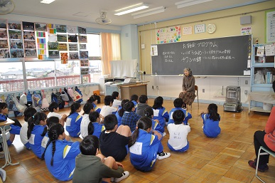 今年も「深谷子どもの本の会」の皆様が本校でお話し会を開いてくださいました。全学年に入っていただき、2校時は1組、3校時は2組で行いました。本日は、総勢14名の会の皆様が来られ、それぞれの学年に入りました。お話し会は、ことばだけを聞きながら、物語の世界を想像して楽しむもので、子どもたちはその世界に引き込まれていました。