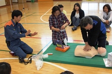 保護者の方と一緒に消防署の署員をお呼びして行いました。
