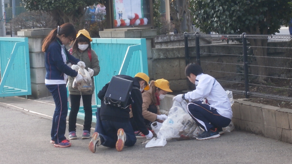 下学年学級のそうじ、通学路ごみ拾い