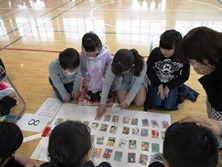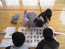 喜ぶ児童、悔しがる児童と様々な顔が見られました。最後の1枚を狙う目は真剣そのものです。お手つきをしてもきちんとルールを守っていました。熱くなってもルールを守る、大事なことです。
