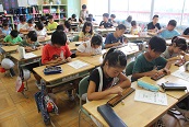 初めて触る児童もたくさんいたようでした。最初はパニックでぎこちない手つきで始まりましたが2時間たった頃には慣れた手つきで問題を解いていました。最後に指導者が読み上げる数を計算する時はとても楽しそうに計算をしていました。