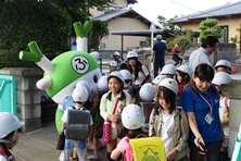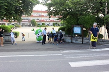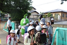 本日朝、小島進深谷市長様とふっかちゃんが校門に立ってくださいました。