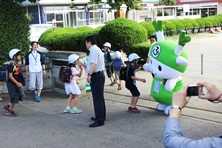 深谷市内の学校すべてに順番で回っているそうです。二人の訪問に児童もいつもより大きなあいさつをしていました。ふっかちゃんに触ろうとたくさんの児童が周りに集まって握手などとしてもらいました。
