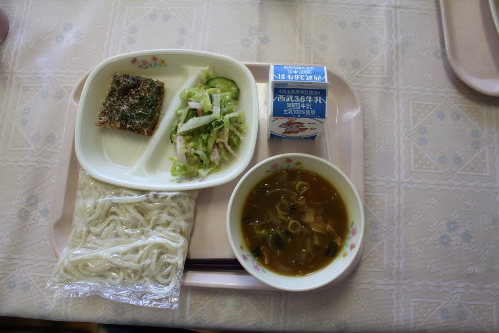 今月の給食目標は、「給食の準備をきちんとしよう」です。どの学級も協力してしっかり給食の準備ができていました。カレーうどんは、ちょうどいい味付けでおいしかったです。お好み焼きも子どもたちに人気でした。