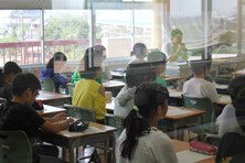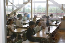 熱中症対策で体育館では行わず、校内放送を使って教室で行いました。急な変更でしたが、落ち着いて式が執り行われました。