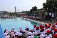 前回と関連し今日はプール開きが行われました。