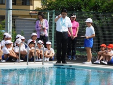 最後は校長先生のお清めと体育主任から安全に、事故に気をつけるようお話がありました。今年度もけがなくたくさん泳ぎましょう。