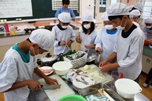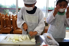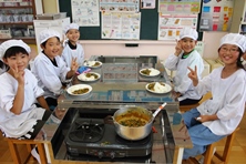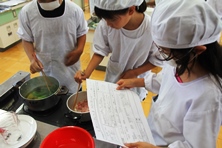 今日は5-1です。じゃがいもとにんじんお肉の代わりにほうれん草とうもろこしベーコンをいれた簡単ポパイカレーです。全員で協力して1時間で完成したようです。職員室でも少しいただきましたが野菜の甘みがよくでたとてもおいしいカレーでした。