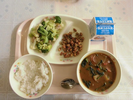 今日はほうれん草の入ったカレーでした。ほうれん草は深谷市の特産品の一つですが、今の時期冬の寒さで甘みが増すと言われているので、献立の中にたくさん取り入れたい食材の一つです。おいしいカレーでした。