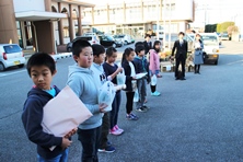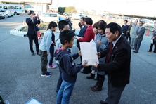 11月21日より半月間5年生が花の世話をしたビオラの鉢花と、お年寄りに宛てた作文を5年生代表の2名が岡部地区の民生児童委員さんに贈呈しました。本来ならば児童が一人暮らしのお年寄りの方々を訪問して直接渡しに行くところですがなかなか難しいので、民生児童委員の皆さまにお願いしました。よろしくお願いいたします。