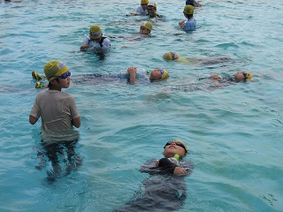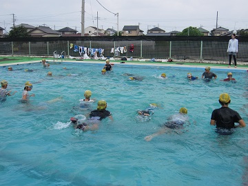 ペットボトルを使っての浮き方の練習や体がどれだけ重くなるかを体験しました。来週から夏休みが始まります。海や川へ遊びに出かける機会もあると思います。今日覚えた方法をできるだけ使わないよう気をつけて行動しましょう。