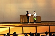 本日終業式を行いました。3年生の児童が舞台で2学期にがんばったこと、また、3学期の目標を発表しました。堂々と大きな声で読み上げました。