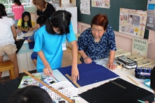 5年生が家庭科でお弁当包みを作っています。
