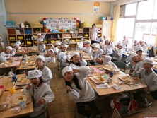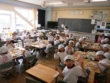 毎日おいしい給食を作っていただいた調理員さんたちに感謝です。最終日もみんな楽しく笑顔で給食をいただきました。児童とは直接関わりがないかもしれませんが見えないところで学校を支えてもらっていました。今年度もどうもありがとうございました。