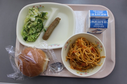今日は、トマトクリームジェノバ風パスタでした。いつもとひと味違う味わいでおいしかったです。具だくさんでトマト風味の中にパセリが感じられてもりもり食べられました。子どもたちもおいしかったと言っていました。はちみつパンは、ほんのり甘くてふわふわでおいしかったです。セサミサラダは、ごまがいいアクセントになっていて野菜もシャキシャキでおいしかったです。