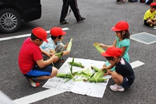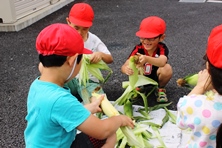 1年生が今日の給食にでるトウモロコシの皮むき体験をしました。