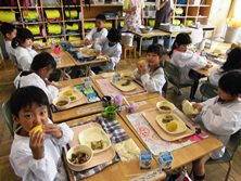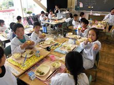 最後に給食でおいしくいただきました。なんと岡部でとれたトウモロコシだったそうです。ごちそうさまでした。