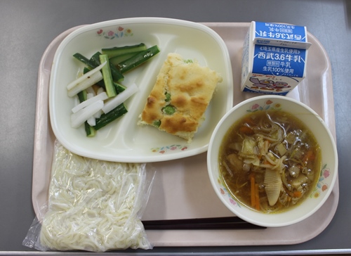 今日は、サンマーメンでした。酢とスパイスの効いたスープがラーメンとよく絡んで暑い日に食の進むメニューでした。子どもたちにも、人気でたくさんおかわりしていました。枝豆チーズパンケーキは、季節の献立でした。旬の枝豆とチーズの入ったパンケーキで子どもたちもおいしそうに食べていました。チーズがいいアクセントになっていておいしかったです。