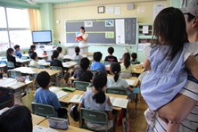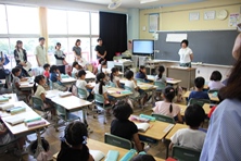 深谷市では、文部科学省より教育課程特例校の指定校を受け、小学校1 年生から英語活動を導入していきます。英語を用いて相手のことを理解したり、自分のことを伝えようとしたりする活動を通じて本校の学校教育目標を実現していきます。活動の様子を学校だよりやHP 等でお伝えしていきます