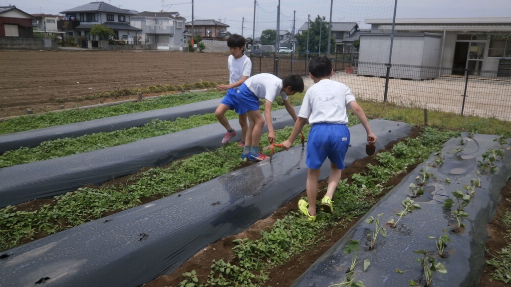 また、6年生は、農園でサツマイモの苗を植えたり、トウモロコシの苗の間引きをしたりしました。農園での野菜作りも活動が盛んになってきました。収穫が楽しみですね。