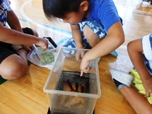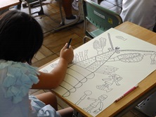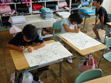 2年生はザリガニが題材です。体育館で触ったり遊んだことを絵で描きます。お腹だったり足の生え方など思い出しながら大きなザリガニを描いていました。