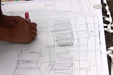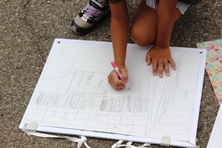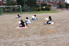 4年生は学校を描いています。細かい部分もありなかなか難しそうです。みんな一生懸命に写生をしていました。