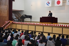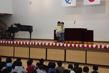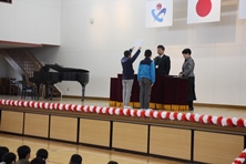 26日に修了式があり、各クラスの代表者が修了証を受け取りました。