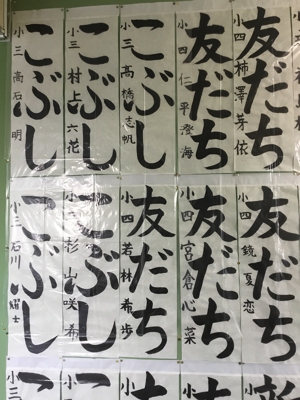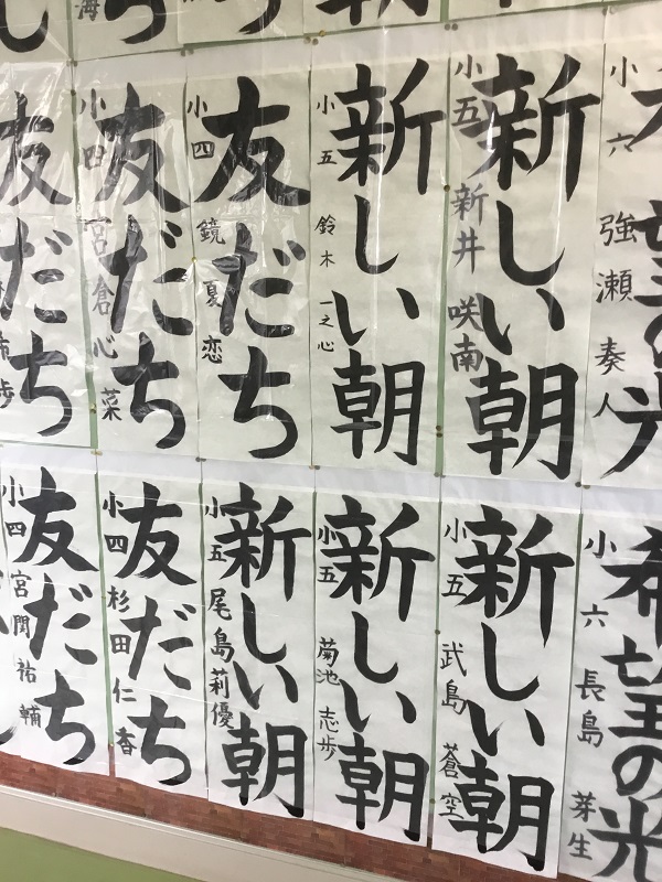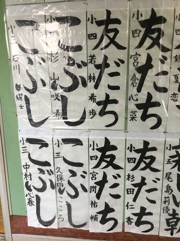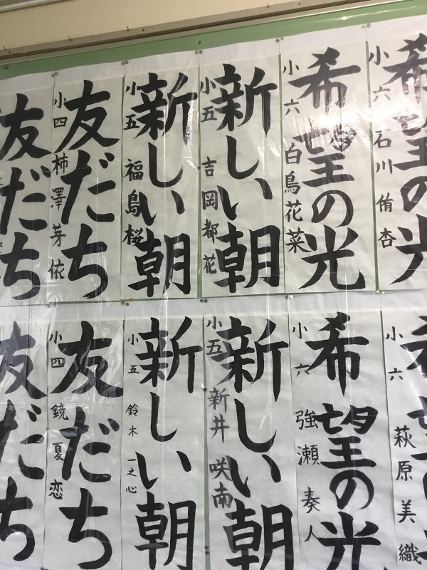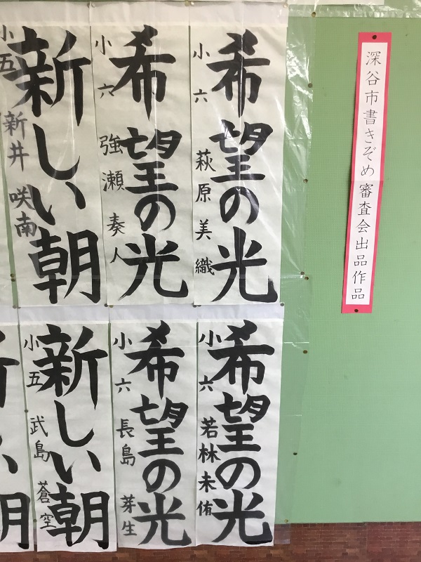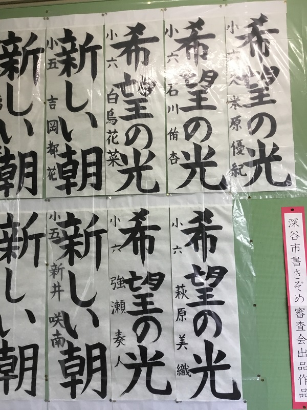 今年もコロナウイルス対策のため、深谷市書きぞめ作品展が実施されず、審査会のみでした。審査会に出品された作品を校内に展示しました。